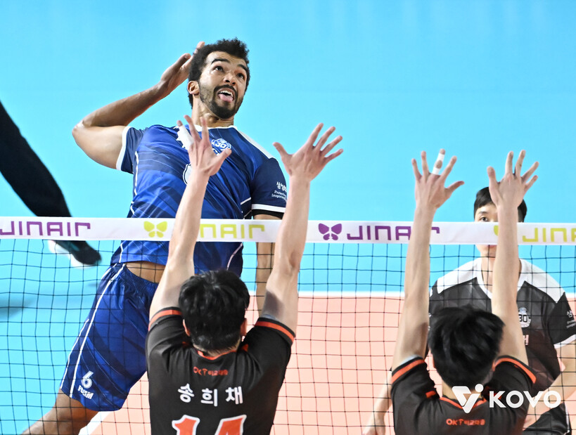 디미트로프 32점 OK저축은행, 삼성화재 꺾고 시즌 첫 경기 승리