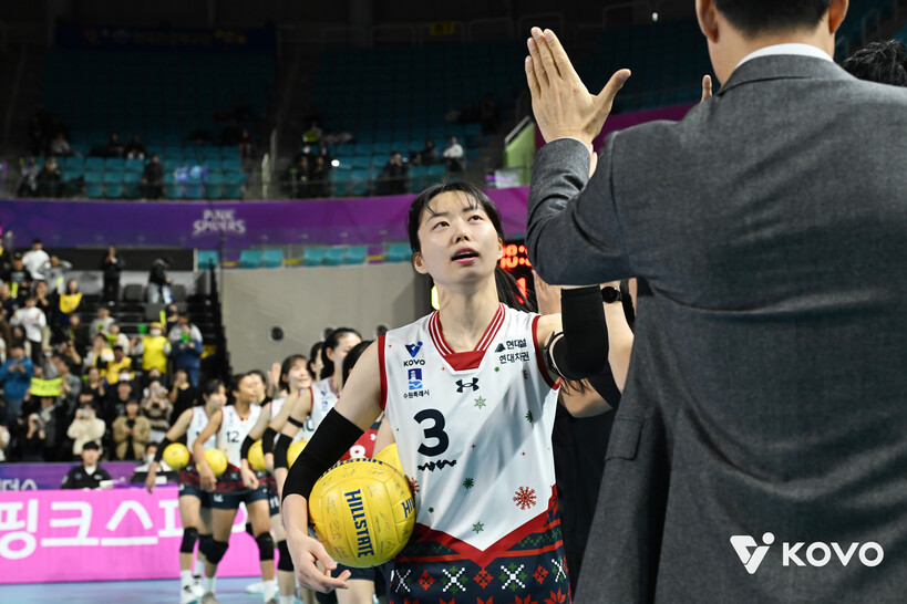 "앞으로도 계속 입으면 안될까요?" 여자프로배구 현대건설이 2025년 마지막 날(12월 31일) 치러진 경기에서 바라던 결과를 손에 넣었다.