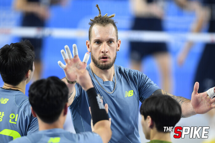 레오가 아포짓은 안 해봤다. 몇 번 연습을 해보긴 했다. 변화를 준 건 나한테도, 팀 자체도 모험이다. 잘 돌아간다면 옵션이 더 생기는 거다. 분위기 전환이 확실히 될 수 있을 것 같다. 승부를 걸어 보려고 한다. (효과가 있다면 앞으로도 같은 방식으로 기용할 생각인가?) 상황에 따라 다를 수는 있다. 조재성이 먼저 들어갈 수도 있다. 이제 조재성이 리시브를 하지 않겠나.