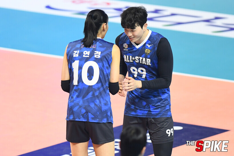 올스타전의 1세트는 남자부가 맡았다. 그러나 여자 선수들도 함께 활약하며 화합의 장이 열렸다.