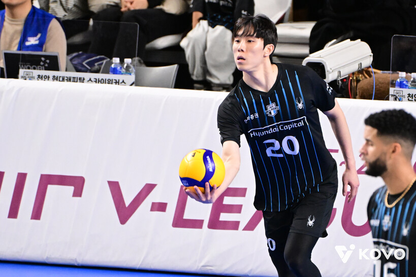 KB손해보험 구단에 따르면 황택의는 이날 출전 선수 명단에 이름을 올렸으나 감기 증세로 코트에 나오지 못했다. 레오나르도 카르발류(브라질) KB손해보험 감독은 상무(국군체육부대) 전역 후 팀에 복귀한 신승훈을 이날 선발 세터로 내보냈다.