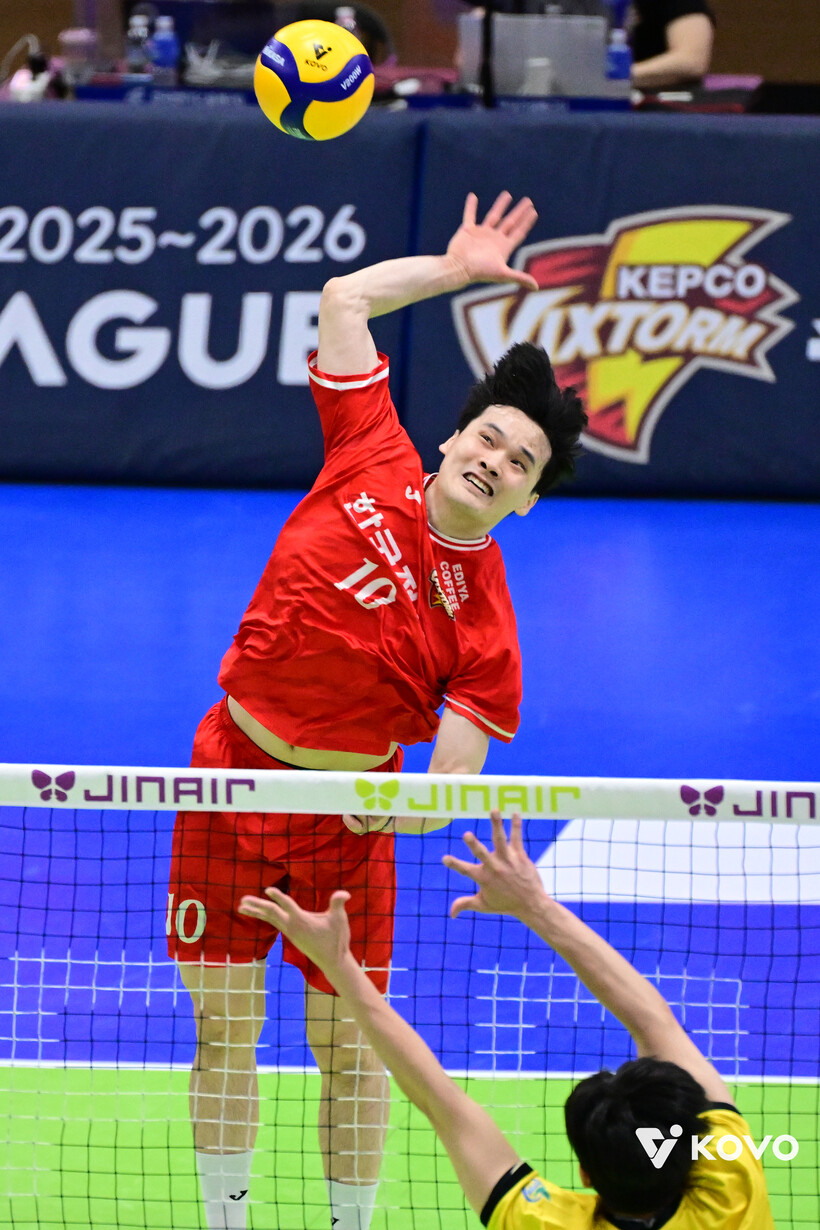 1세트를 먼저 가져갔지만 2~4세트를 내리 내주면서 역전패를 당했다. 분위기가 가라앉을 수 있었지만 한국전력은 연패에 빠지지 않았다. 13일 같은 장소에서 열린 KB손해보험과 2025-26시즌 진에어 V-리그 3라운드 홈 경기에서 세트 스코어 3-0으로 이겼다.