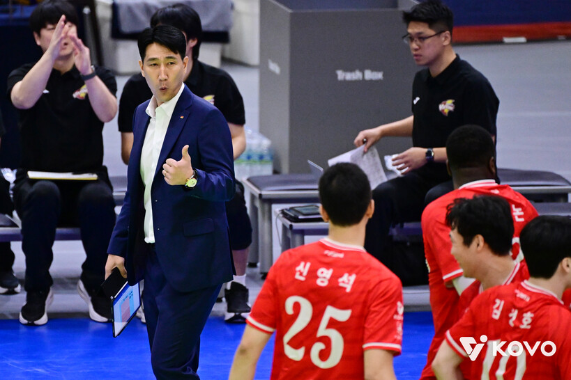 권 감독은 "이번 경기는 앞선 경기(우리카드전)와는 달랐다. 선수들 모두 잘해줬다. (김) 정호도 물론이고 특히 세터 하승우가 제 역할을 했다. 서재덕, 정민수 등 리시브 라인도 잘 버텨줬다"고 만족해했다.