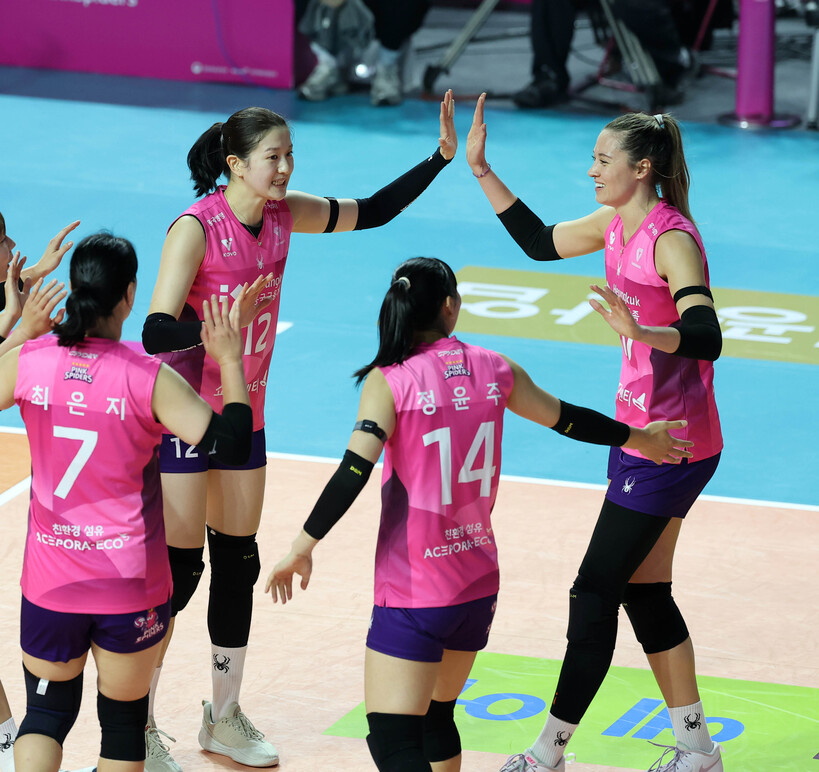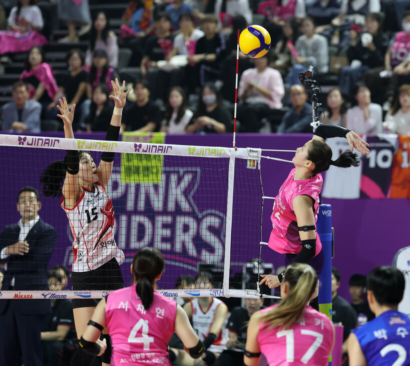 흥국생명은 듀스에서 웃었다. 상대 공격 범실 덕을 봤다. 24-24 상황에서 정관장은 이선우와 박은진이 시도한 공격이 모두 아웃돼 고개를 숙였다.