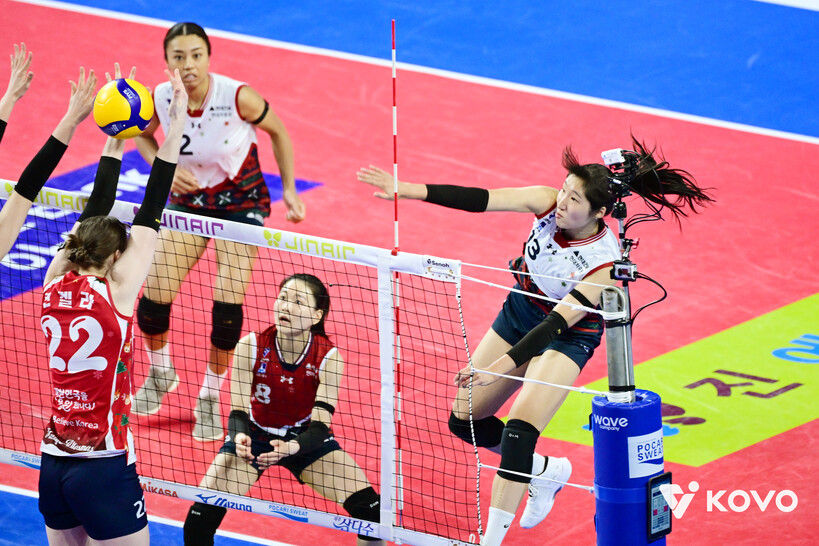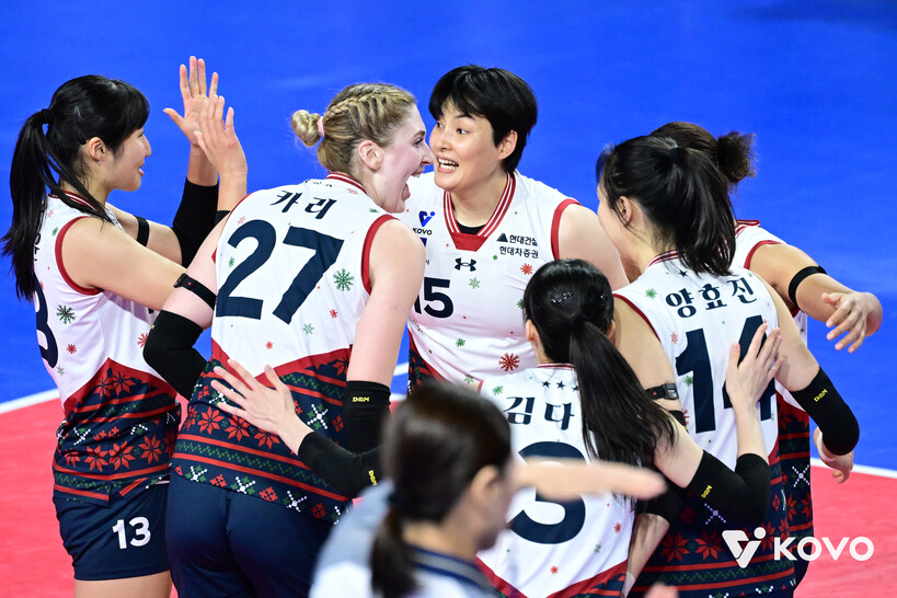 정지윤은 팀내 가장 많은 25점을 올리며 현대건설 승리 주역이 됐다. 양효진과 자스티스(일본)가 각각 19, 14점을 기록하며 뒤를 잘 받쳤다. 카리(미국)는 12점, 나현수도 10점으로 힘을 보탰다.