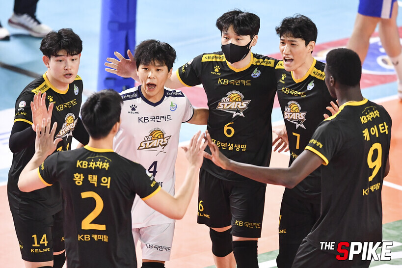 KB손해보험은 8일 대전충무체육관에서 열린 도드람 2021-2022 V-리그 삼성화재 5라운드 경기에서 세트스코어 3-0(25-20, 25-20, 25-23)으로 셧아웃 승리를 따냈다.