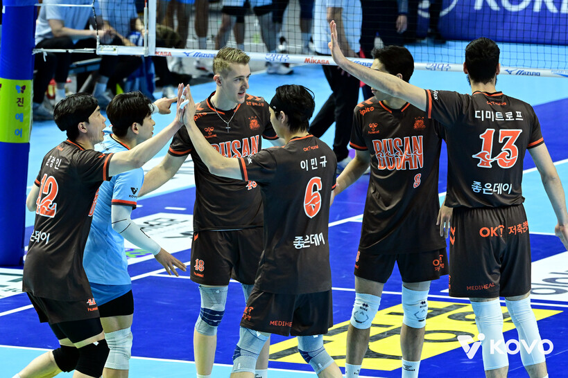 남자프로배구 OK저축은행이 원정길에서 귀중한 승리와 승점을 챙겼다. OK저축은행은 13일 인천 계양체육관에서 열린 대한항공과 2025-26시즌 진에어 V-리그 4라운드 원정 경기에서 풀세트까지 가는 접전 끝에 3-2(21-25 25-20 20-25 30-28 15-13)로 이겼다.