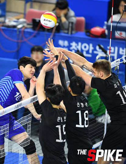 여기에 블로킹 1위 신영석(세트당 0.664개)을 필두로 한 미들블로커진 높이와 준수한 사이드 블로킹까지 더해진 블로킹 위력은 여전했다. 파다르는 세트당 블로킹이 0.594개에 달할 정도로 블로킹을 잘 잡는 편이고 이승원도 신장대비 블로킹 능력이 준수하다.