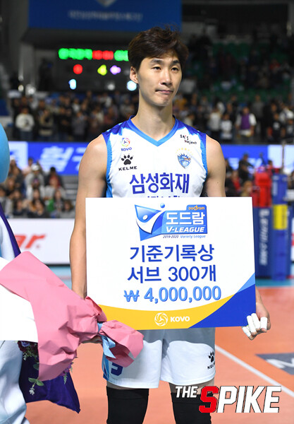 삼성화재 박철우는 26일 대전 충무체육관에서 열린 도드람 2019-2020 V-리그 남자부 한국전력과의 경기에서 국내 2호 서브 300개를 기록했다.